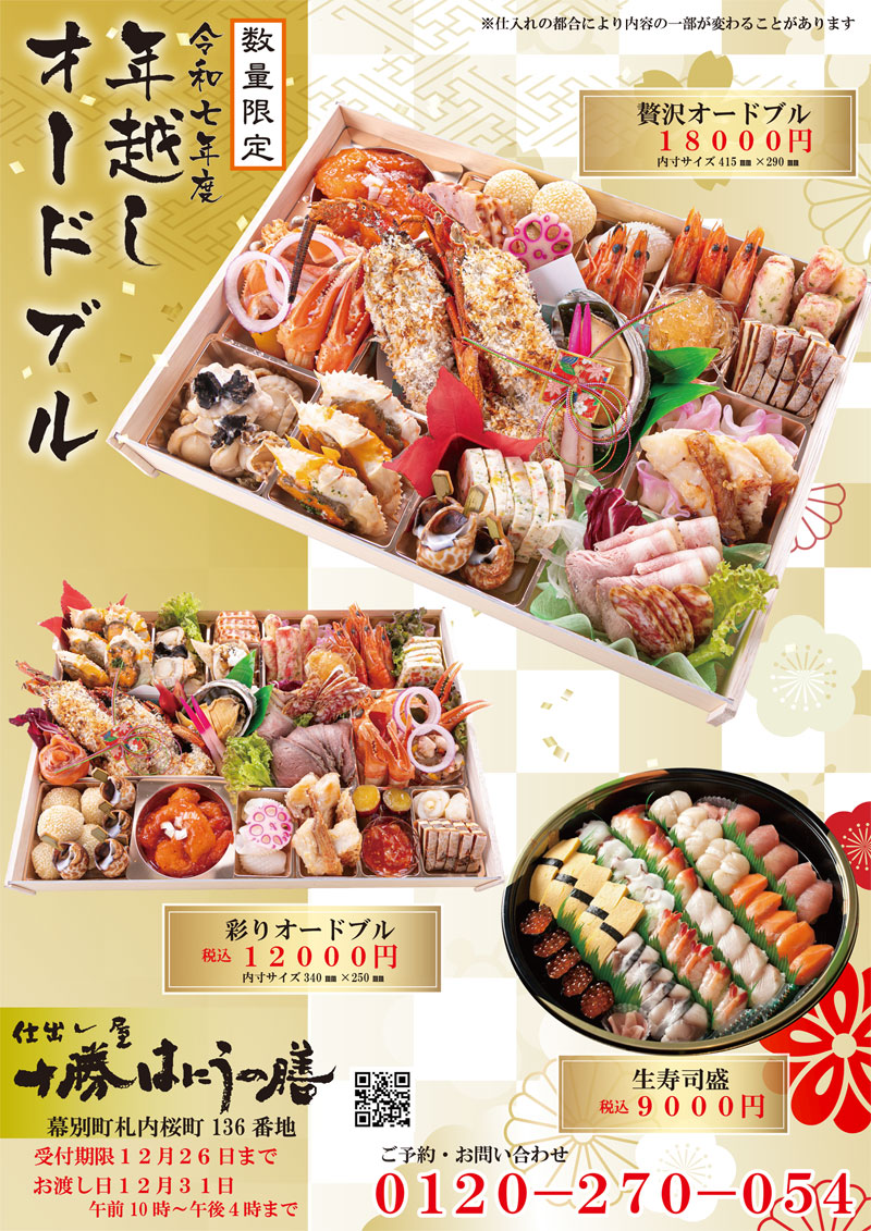 皆さんでつまめるオードブルから、お寿司の詰め合わせもございます。